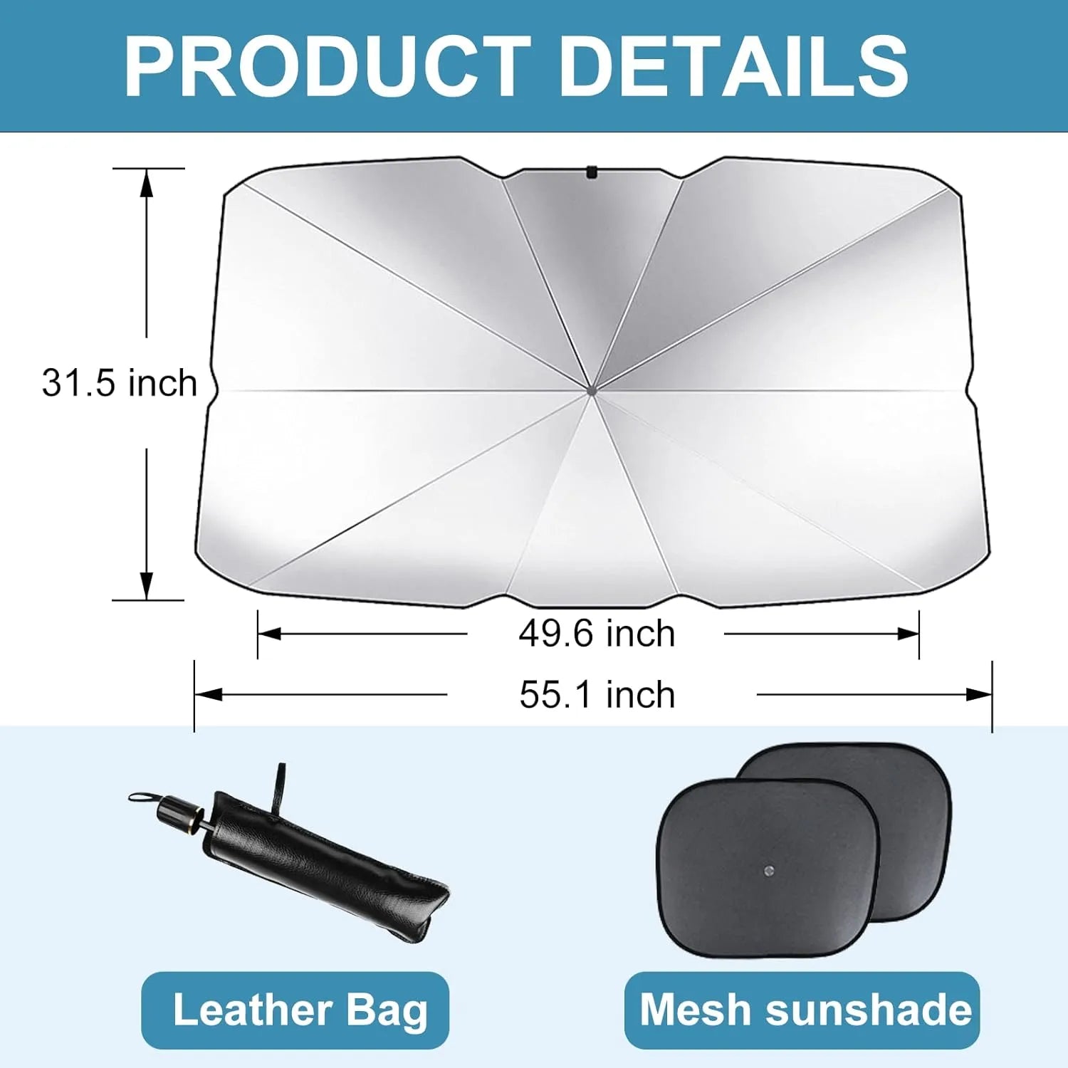 يبلغ حجمه 57 × 31 بوصة ، وهو مصمم ليناسب معظم سيارات السيدان وسيارات الدفع الرباعي والشاحنات الصغيرة والشاحنات . ( نصيحة: قم بقياس الزجاج الأمامي للحصول على أفضل ملاءمة قبل الطلب. ) -
