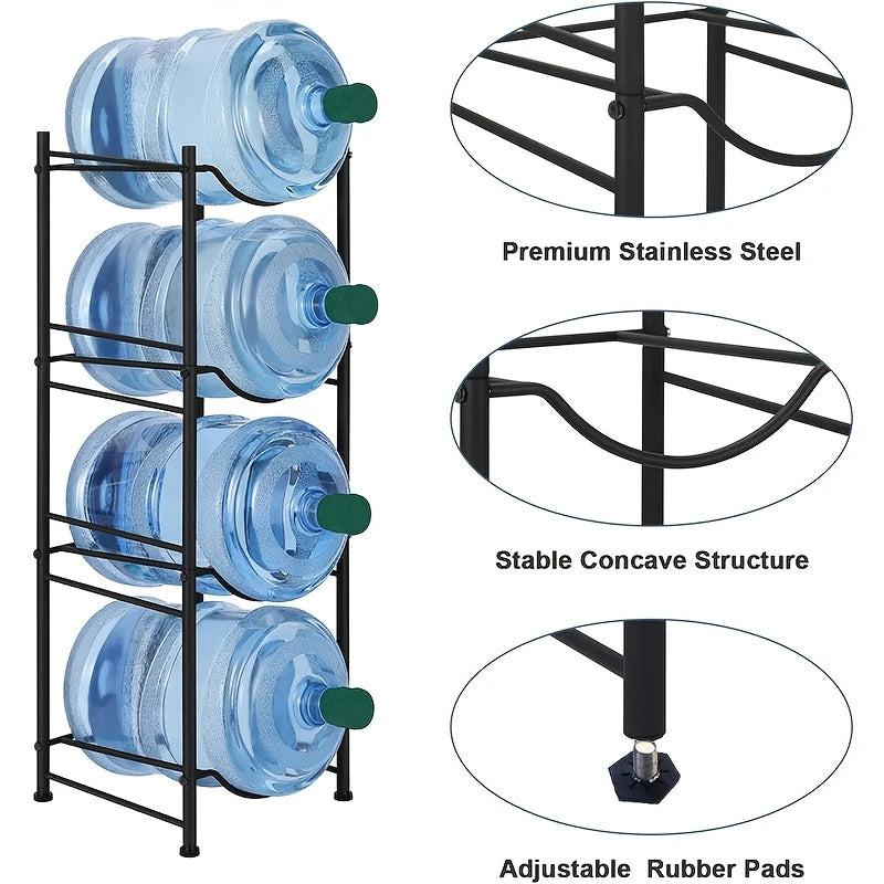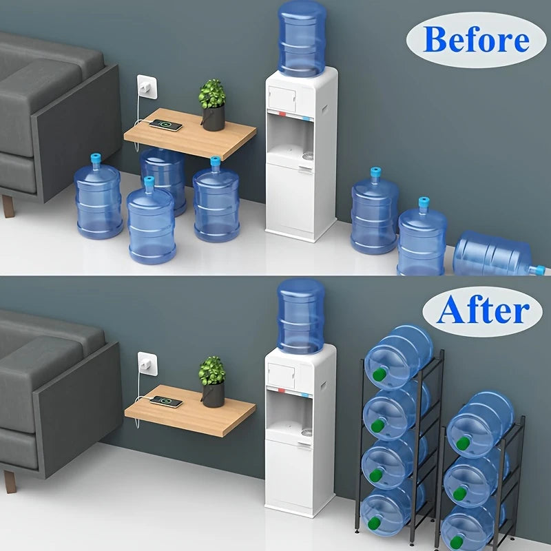 استغل مساحتك على أكمل وجه باستخدام حامل زجاجات المياه لدينا. هذا الحامل المصنوع من الفولاذ المقاوم للصدأ يتسع لثلاث زجاجات مياه سعة 5 جالون، مما يوفر المساحة ويعزز ترتيب المكان. مع قواعد مطاطية واقية، وقابلية التكديس والفصل، هذا هو الحل الأمثل لتخزين آمن ومنظم.